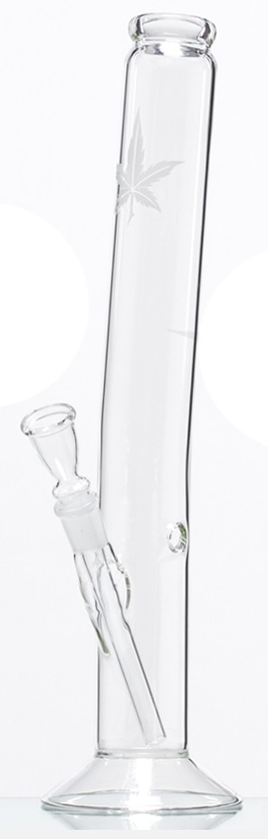Sand Leaf Glas Bong 42cm NS18 - handliche & hübsche Glasbong mit sandgestrahltem Hanfblatt.