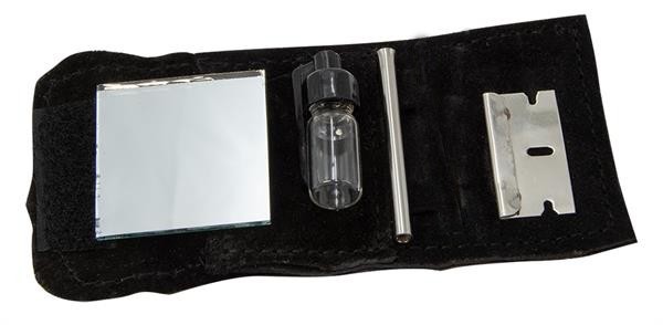 Das Suede Schnupfset bietet Dir einen Spiegel, welcher 4,5x4,5cm gross ist, eine Klinge, ein 60mm langes Ziehror, einen Löffel sowie einen Dosierer - ordentlich aufgeräumt in einem Velourslederetui.