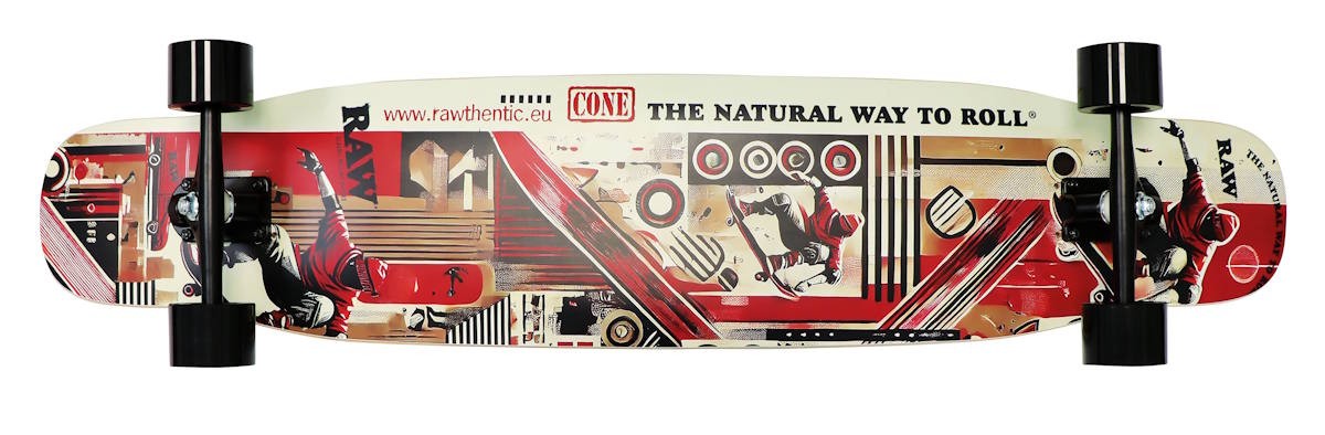 Das RAW Longboard Classic kombiniert entspanntes Cruisen mit einem markanten RAW Design. Das lange Deck sorgt für Stabilität, während die breiten Rollen ein ruhiges und kontrolliertes Fahrgefühl liefern. Ideal für City Rides, lange Wege und chillige Sessions.