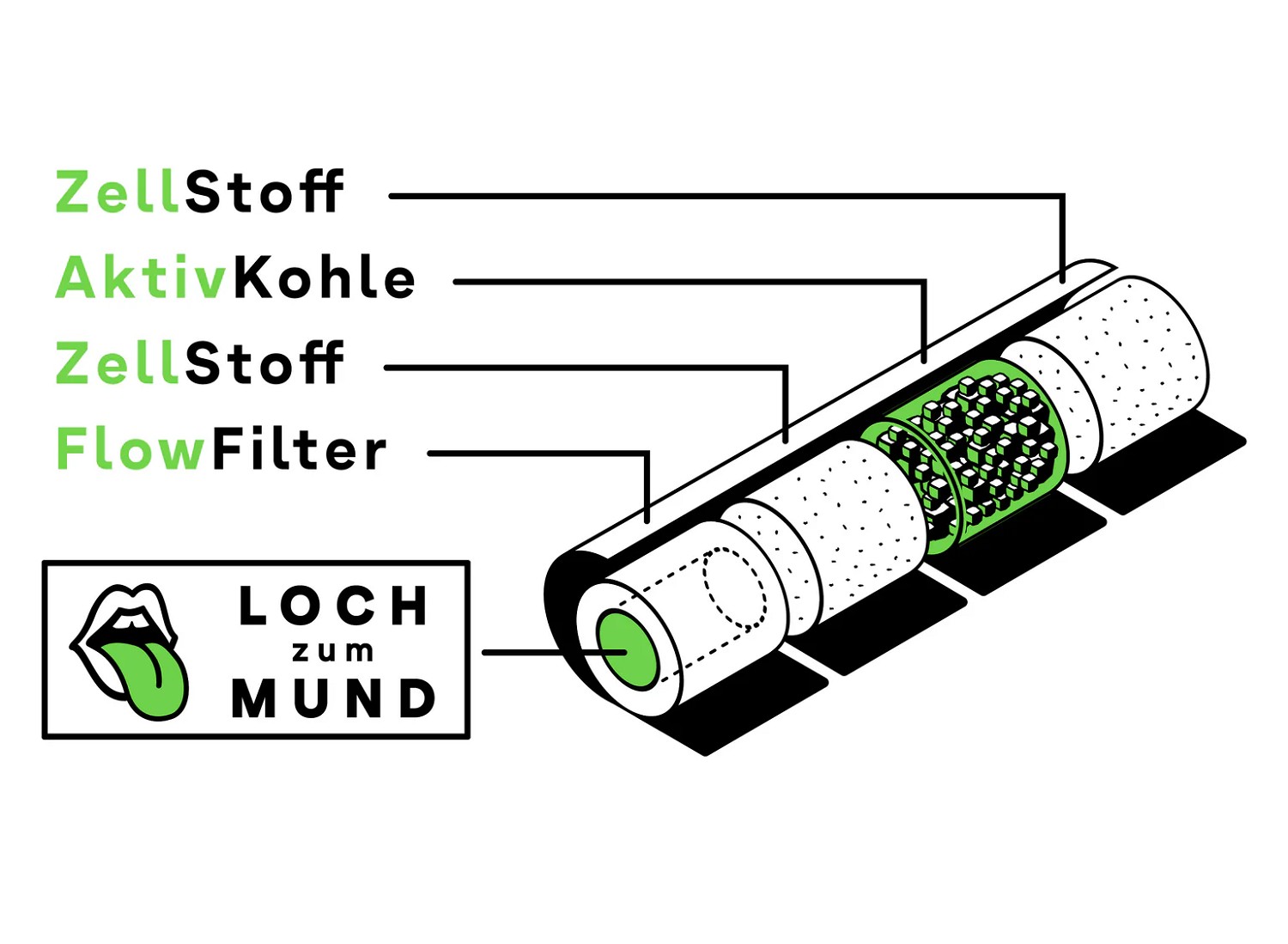 Wichtig: Das Loch gehört immer zur Mundseite – nur so entfalten die Filter ihre volle Wirkung.