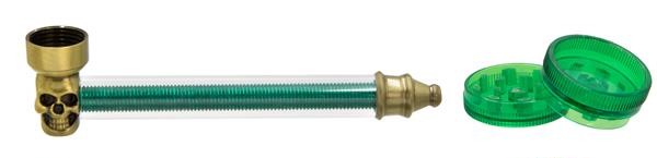 Aluminiumpfeife Skull + Acrylgrinder Set Grün