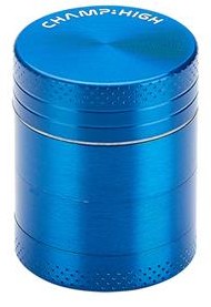 Der CNC Aluminium Mini Grinder 4-tlg ø 30mm verfügt über ein "Champ High" Logo und ist in den Farben blau, grün, rot, schwarz, lila und silber erhältlich.