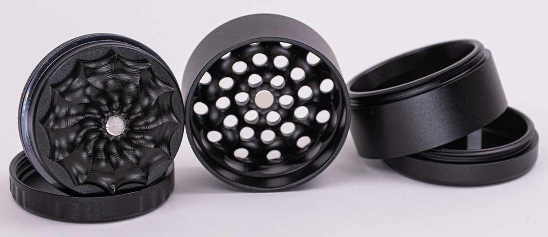 Flower Mühle Schwarz: Lässt die Weed Aromen optimal entfalten. Gleichzeitig entfällt das nervige Abkratzen von Material, das sich sonst zwischen langen Mahlzähnen festsetzt.