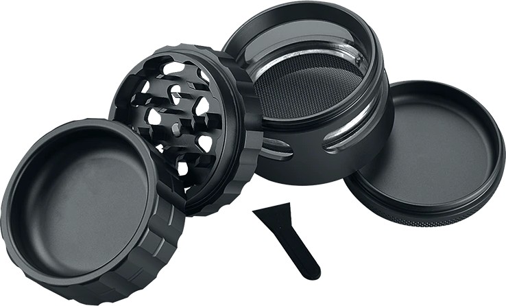 Robuster 4-Teile-Grinder aus Aluminium für gleichmässiges, sauberes Mahlen – alltagstauglich, griffig und mit elegantem Black-Finish. Der präzise Schliff und die scharfen, diamantförmigen Zähne sorgen für feines, fluffiges Mahlgut, während das integrierte Sieb das Beste zuverlässig trennt.