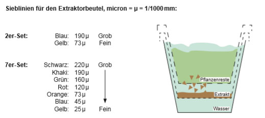 Je feiner das Sieb, um so geringer der Ertrag, aber auch um so kräftiger das Ergebnis.