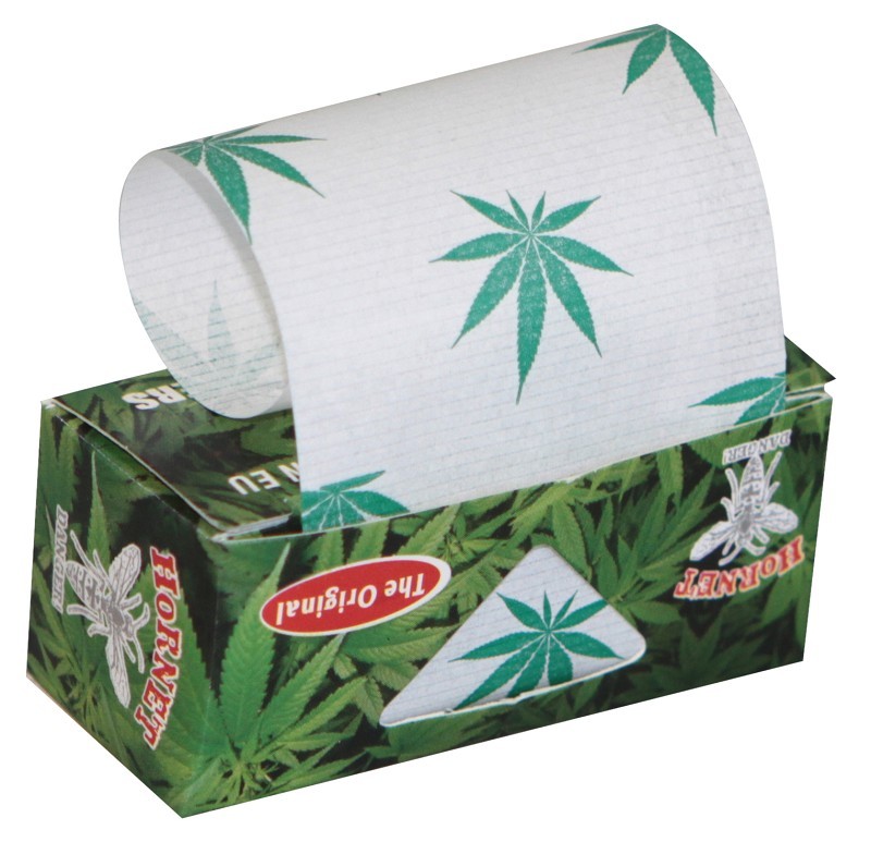 Die weissen Rollen sind mit kleinen, grünen Hanfblättern bedruckt, was sie zu einem echten Hingucker macht!
